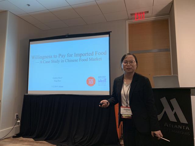 7月21日至25日,成人直播 周谷珍老师应邀参加在美国亚特兰大举行的2019年美国农业经济学和应用经济学协会年会(Agricultural & Applied Economics Association Annual Meeting, AAEA 2019),并在会议上做了论文汇报。