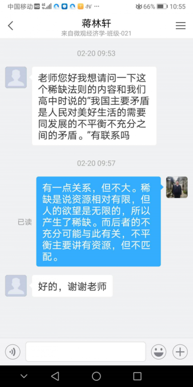 目前,我已经上了6周的网络录播课。在此过程中,我在课前都会做好充分的准备,在课堂时间会给学生仔细讲解各章知识点中的重点和难点,要求学生课后认真复习。在疫情面前,用自己的最大的努力来上好每一堂网课。据学生们反映,在他们听语音录播课的过程中,声音清晰,很少出现比较卡的情况,偶尔会出现网络延迟。他们肯定了我这种线上教学模式,认为这种模式要比只答疑、不讲授课程的模式要好,他们收获得更多。同时,从每次课堂测验的成绩可以看出学生对当堂课程掌握的程度,以及哪些知识点掌握不到位,可以在下次课上课的时候再复习一下,有的同学没有听懂的地方,也会在微信群中当场提出来,老师可以当场解答,效果比平时课堂上课还要好。每次上完课学生都客气地和老师再见,以及谢谢老师。