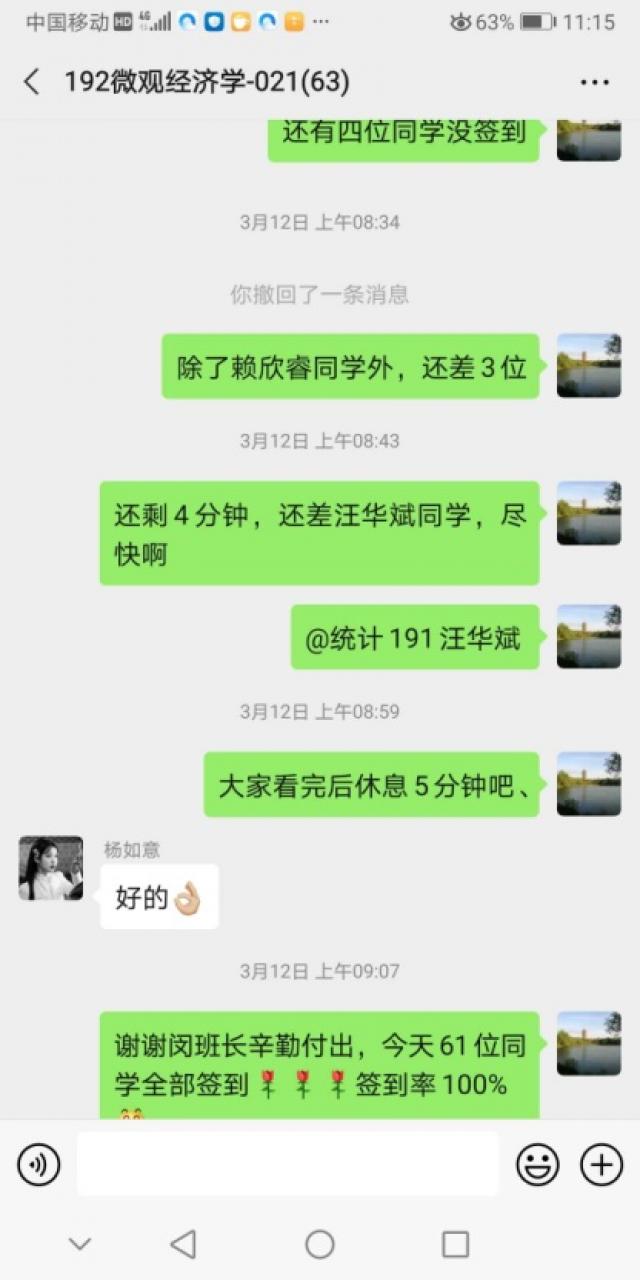 但是,这种线上教学方式也存在着一些问题,其中比较突出的是对于学生的监督问题。由于没法看到学生们在家里上课的情况,监督是个难题,每次签到总有个别同学没签到,或者在规定时间内不签到要求老师放宽签到时间,同时,有的学生可能存在“仅签到,而不学”的情况。另外,有个别同学家住农村或者边远山区,有时候网络不稳定,导致签到不及时或者作业提交不上。针对这些情况,我们课程组老师之间也在加强沟通和交流,思考能够改善这个问题的方法或措施,如在微信群催同学签到,让班干部或者关系好的同学相互提醒签到等等,后续可能还会做一些新的探索。为家住农村或者边远山区的学生延长签到时间和提交作业的时间。