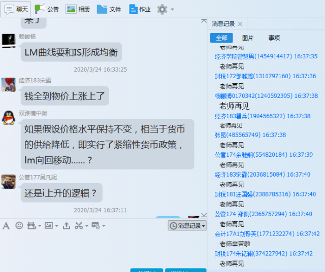 据课后与大家的交流,在他们听直播的过程中,绝大部分时间学习通网络是顺畅的,偶尔会出现网络卡顿的现象,但时间持续非常短。大家肯定了我的这种直播加录屏复习的这种线上教学模式,认为即使当时没听懂,课后还可以在继续看录屏补上没听懂的知识。课后,我也会及时通过QQ回答每一位同学的问题。但是,我自己的思考是,线上教学的效果一方面取决于老师的尽力尽责,另一方面还取决于学生的学习态度和学习状态。比如,由于没法看到学生们在家里上课的情况,监督是个难题,有些学生可能存在“仅签到,而不学”的情况。那么针对这种情况,需要进一步向其他有经验的或者做的比较好的老师请教,希望更多的学生能够融入线上教学课堂,后续可能会做一些新的探索。最后我的授课感想是:即便我们处在这场没有硝烟的战争中,可我们依旧能够畅通地传递知识,享受着知识赋予我们的力量。