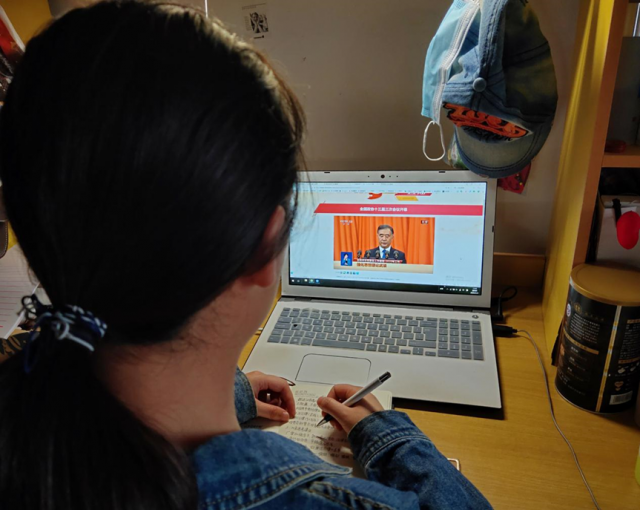 5月21日下午,全国政协十三届三次会议在北京人民大会堂开幕。成人直播 本科生党支部组织学生党员通过学习强国、中新网等等平台观看直播。