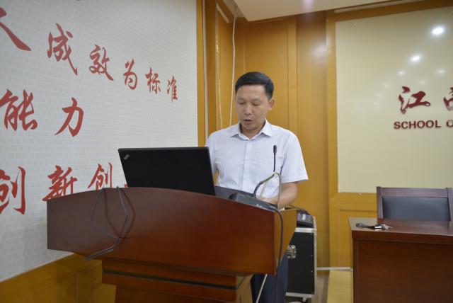 院党委书记邹春发在大会上做总结讲话。他首先代表学院党委向全院师生党员致以节日的问候,向受表彰的先进党支部和优秀个人表示热烈的祝贺,向为学院建设发展而努力付出的全体党员致以诚挚的感谢。