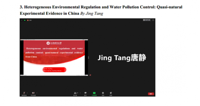 8月15日,成人直播 研究生唐静参加了美国农业经济学和应用经济学协会举办的线上年会(Agricultural & Applied Economics Association Annual Meeting, AAEA 2020),并在会议上汇报了同导师潘丹,成人直播 研究生何咪咪合作的论文“Heterogeneous Environmental Regulation and Water Pollution Control: Quasi-natural Experimental Evidence in China”。