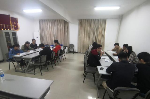 活动分成三个场次进行,每场面试安排了十二位面试者和四位面试官,分为不同论题的两组同时进行。待面试人员入场后,启航工作人员告知面试规则,并宣布面试开始。两组面试者在短暂的思考后由本组“破冰者”开始发言,面试者均十分投入,积极讨论。面试官仔细观察面试者的表现并在评分表上记录评分。在启航工作人员宣布讨论结束后,每组选出一位发言人向面试官陈述经过讨论得出的解决方案。