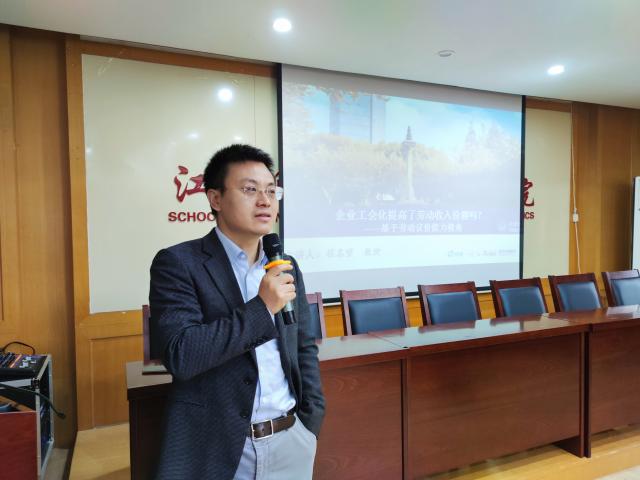 12月28日上午,成人直播 于蛟桥园北区综合楼718会议室举办经济发展与制度创新系列讲座第九讲。此次讲座主题为《企业工会化提高了劳动收入份额吗》,邀请到同济大学程名望教授担任主讲人。成人直播 院长张利国担任主持人。