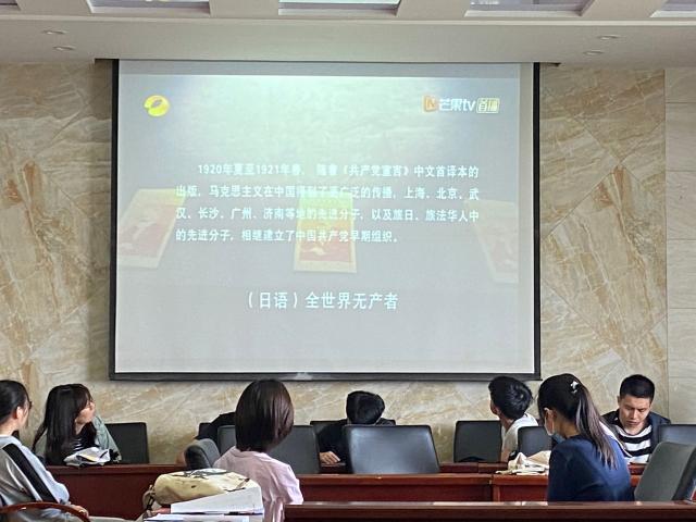 发展对象到预备党员的培训时间”“党员的党龄从何时算起”等问题并督促同学们平日加强党史和党的基本知识的学习,提高思想认识水平。最后,全体成员一起观看了《理想照耀中国》第一集《真理的味道》,影片讲述了陈望道先生,看到旧社会“吃人”的现象,通过翻译《共产党宣言》为中国先进知识分子在黑暗中指明方向,投身革命。