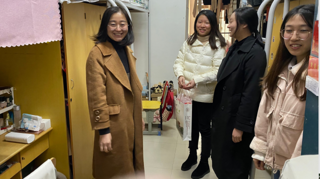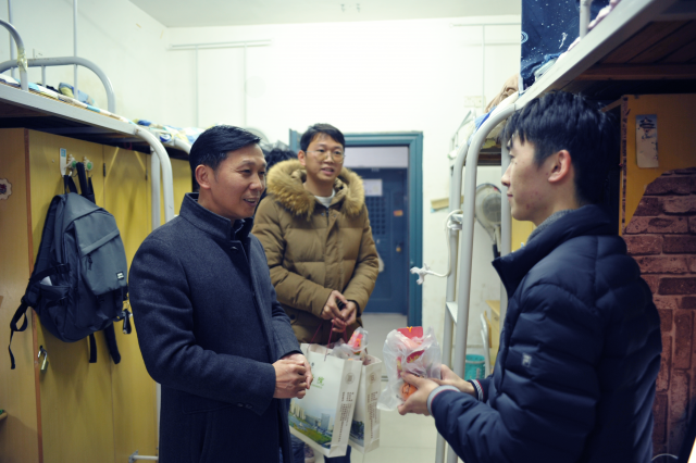 12月23日,成人直播 开展考研学子慰问活动,成人直播 党委书记邹春发、副书记远翠平,学工办副主任万婧怡、辅导员钟义鹏和学院志愿者同学们一同深入毕业班学生宿舍开展送祝福活动。