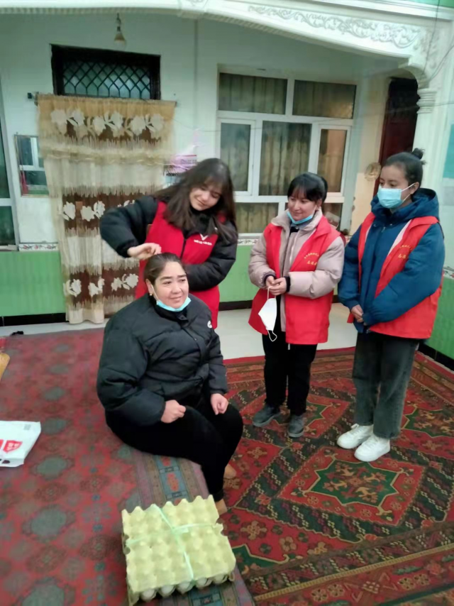 同学们还开展了送温暖、送文化、送新风等志愿服务活动。学生们来到村民家里帮助进行卫生大扫除、宣传健康卫生知识、举办文艺晚会等活动,营造欢乐祥和、温馨谐的节日氛围。尽己所能发光热,同学们以各种各样的方式践行着“我奉献我快乐”的志愿服务精神。苏比努尔同学原计划乘飞机返校,在志愿服务过程中,他把提前预定的飞机票取消,改签为火车硬卧,把省下来的钱用来购买牛奶等物品,走访慰问村里多位生活困难的孤寡老人。努尔夏提同学自发为一高中一年级的学生补课,同学们利用假期在实践中展现担当,在担当中聚集力量,感知温暖,感悟成长。