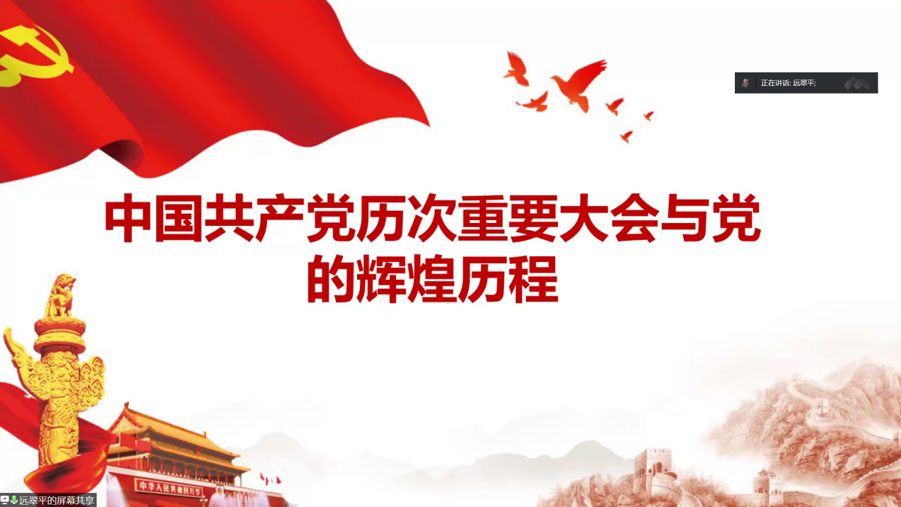 远翠平老师分别介绍了新民主主义革命、社会主义革命和建设时期、改革开放与中国特色社会主义新时代四个时期的中共代表大会的开会时间、地点和每次会议传达的主要思想,让我们对中国共产党的整个发展历程做了基本的了解。