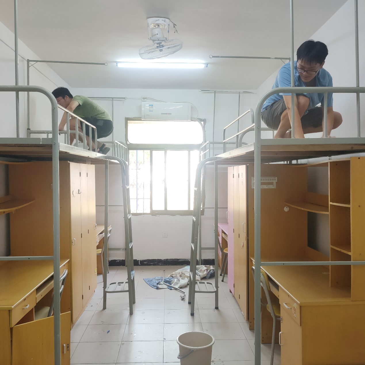 为了让新生入住就能有一个干净的寝室,9月10日辅导员谢尔艾力积极组织学生干部们打扫新生寝室,将门上每一张贴纸铲除,将床桌上每一粒灰尘擦除,贴好每个寝室的门牌,让新生入住便能更好地拥有归属感。