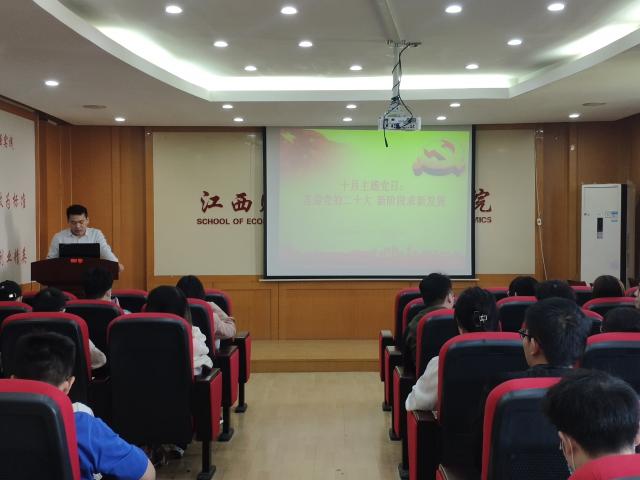 10月16日,中国共产党第二十次全国代表大会在北京人民大会堂开幕。为引导党员学习党的二十大精神和习近平总书记的重要讲话精神,并将其融入到日常的工作实践当中,不忘初心、牢记使命。2022年10月18日,成人直播 研究生第一、第二党支部通过线下会议形式,联合开展了主题为“喜迎党的二十大,新阶段求新发展”的党日活动。会议由第二党支部熊旺旺主持,研究生第一党支部书记谢尔艾力,第二党支部书记杨柳及成人直播 全体研究生党员共同出席。