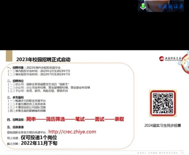 为持续开展新年度“投资者教育进百校”活动,推动投资者教育纳入国民教育体系,增强高校学生及社会公众对资本市场理解认识,同时加强大学生对证券领域就业市场和前景状况的了解,拓宽就业视野。11月5日下午成人直播 就业部邀请国新证券于线上腾讯会议举办主题为“选择合法机构,远离非法主体;坚持理性投资,谨防上当受骗”的投资者教育活动。成人直播 团委书记万婧怡和120余名学生共同参与了本次活动。