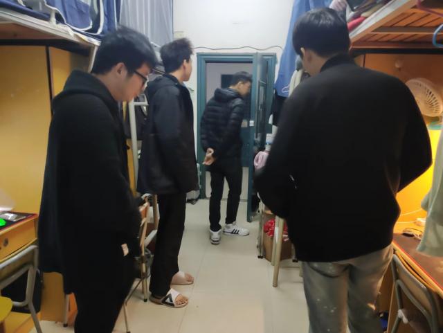 为进一步落实疫情防控要求,加强成人直播 研究生宿舍的安全管理、安全监督,引导学生营造舒适、安全的学习生活环境。进一步了解疫情期间学生宿舍生活情况,成人直播 辅导员钟义鹏带领学生干部对宿舍采取不定时抽查,也于2022年12月9日晚对在校研究生宿舍开展宿舍卫生安全检查工作。