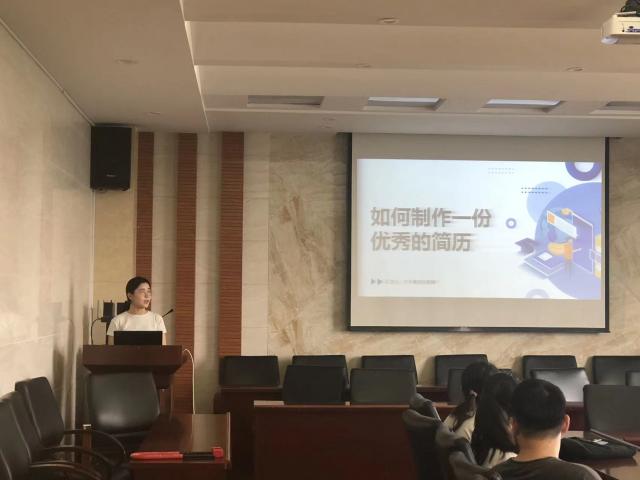 本次讲座以“如何制作一份优秀的简历”为主题展开,逻辑清晰,层层递进。首先,陈婷从自己的工作经历出发,指出了简历制作目标明确、语言简洁的特点。接着,她从基本信息、教育背景、实习经历、个人技能与能力方面介绍简历制作的内容。随后,她通过几份优秀的简历,让同学们直观、清晰地掌握优秀简历制作的方法。