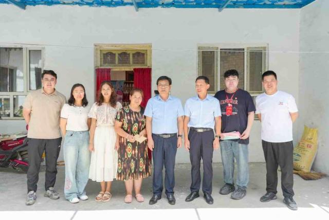 校领导一行先后驱车一百多公里来到22级成人直播 麦冉萨古·伍斯曼江和22级财税与公共管理学院热伊木·玉素甫江家中进行走访慰问,并送去慰问金。