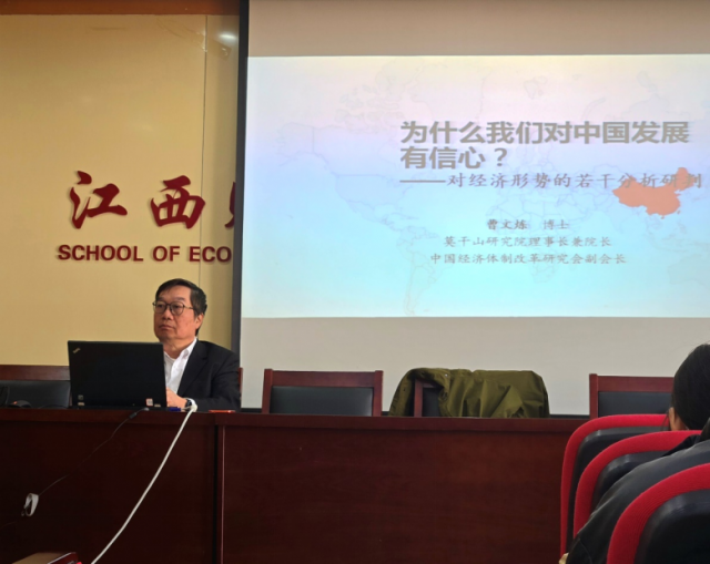 2024年12月21日下午,莫干山研究院理事长兼院长、中国经济体制改革研究会副会长曹文炼博士应成人直播 邀请,作了主题为“为什么我们对中国发展有信心?——对经济形势的若干分析研判”的精彩讲座。讲座由成人直播 副院长李国民教授主持,吸引了院内50余名师生参与。