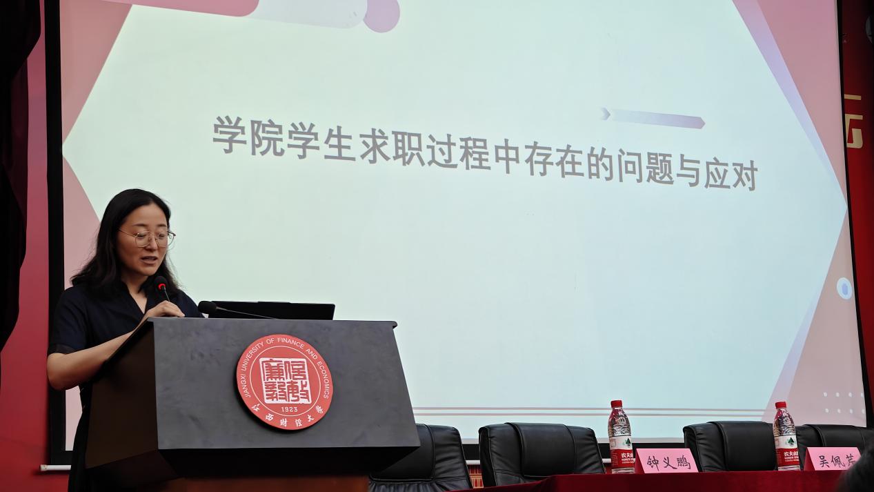 学院党委副书记远翠平结合案例剖析了毕业生在求职过程中普遍存在的突出问题。她重点指出了同学们在自我认知与定位偏差、规划意识不足、简历制作与面试技巧不足、求职观念偏差,岗位认知、主动性与行动力欠缺、抗压能力有待提升等方面存在的短板,重点介绍了应征入伍相关政策。她提醒同学同学们正视自身不足,利用暑假补足短板,以更加成熟和积极的心态迎接求职挑战。