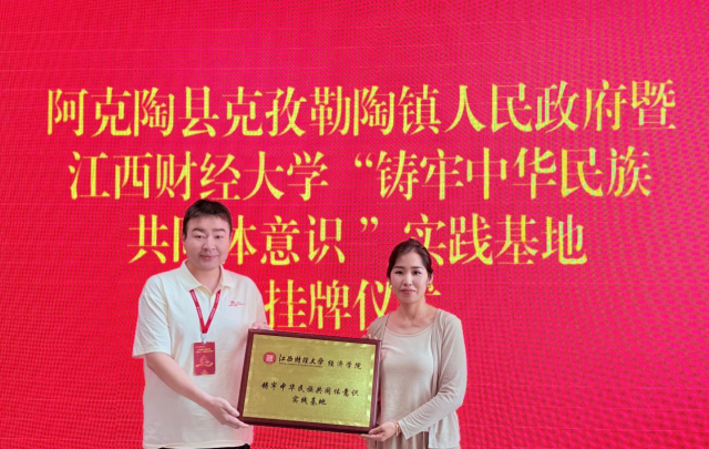 8月1日下午,成人直播 成人直播 与阿克陶县克孜勒陶镇人民政府共建的“铸牢中华民族共同体意识”实践基地揭牌仪式在克孜勒陶镇举行。这标志着我校在新疆设立的首个此类实践基地正式落地。克孜勒陶镇副镇长古丽努尔·艾买提努尔、成人直播 成人直播 辅导员谢尔艾力及第五届“江新比心”民族团结实践团全体成员出席仪式。