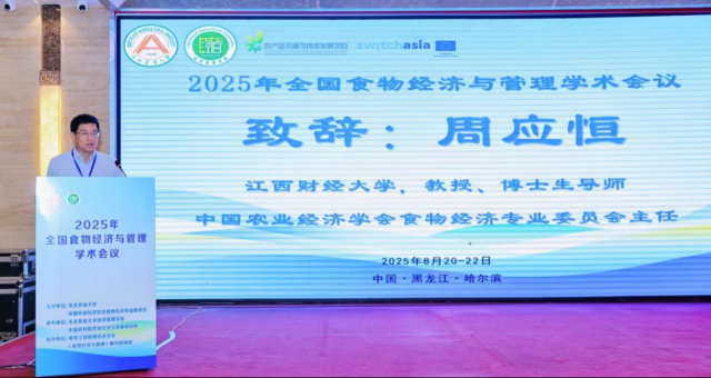 8月20-22日,2025年全国食物经济与管理学术会议在哈尔滨隆重举行。本次会议由东北农业大学、中国农业经济学会食物经济专业委员会共同主办,东北农业大学经济管理学院、中国农业科学院农业经济与发展研究所承办。来自中国人民大学、中国农业科学院、中国农业大学、浙江大学、吉林大学、西北农林科技大学、南京农业大学、扬州大学、成人直播 、东北财经大学、安徽农业大学、上海海洋大学、天津科技大学等高校和科研单位的120余人参会。成人直播 周应恒教授、张利国教授,以及当代财经杂志社陈苏副教授参加了此次会议。