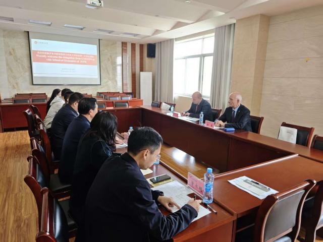 On the morning of November 10, a delegation from St. Petersburg State University of Economics, Russia, led by Vice President for International Relations Dmitry Vasilenko and Director of the Department of International Cooperation Oleg Zolotokrylin, visited our college. The delegation conducted research and exchanged views on topics related to discipline and program development, as well as the Digital Economy program (Sino-Foreign Cooperative Education). Attending the symposium were Liu Xiaobing, Deputy Director of the Office of International Cooperation and Exchange; Professor Zhang Liguo, Dean; Zou Chunfa, Party Secretary; Yuan Cuiping, Deputy Party Secretary; Professor Li Guomin, Vice Dean; Professor Zeng Yongming, Vice Dean; and Guo Yunyun, Director of Academic Affairs. The meeting was chaired by Deputy Director Liu Xiaobing. Dean Zhang Liguo and Deputy Director Liu Xiaobing extended warm welcomes on behalf of the university and the college respectively, expressing full affirmation of the long-standing cooperative relationship between the two institutions. During the subsequent discussions, both parties engaged in systematic and in-depth exchanges on multiple key issues concerning the Digital Economy (Sino-Foreign Cooperative Education) program. Specific topics included: - Curriculum system construction and optimization - Dynamic revision mechanisms for training plans - Seamless arrangements for student study abroad in Russia - Exploration of diversified training models - Project promotion and enrollment strategies - Selection and teaching implementation of Russian faculty members The exchange proved pragmatic and productive, yielding preliminary consensus on multiple specific matters and laying a solid foundation for subsequent teaching organization, faculty allocation, and cooperative management of the program. Both parties expressed shared anticipation for the continued advancement of the Digital Economy (Sino-Foreign Cooperative Education) program and their commitment to jointly elevate educational exchange and cooperation between China and Russia to new heights.