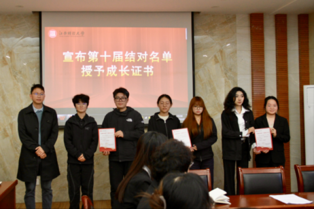 谢望礼教授为“自强之星”奖学金获得者颁奖,鼓励他们永葆进取之心,勇担时代责任。吴佩芹老师和钟义鹏老师对第九届优秀助教进行表彰。万婧怡老师宣读第十届结对名单。