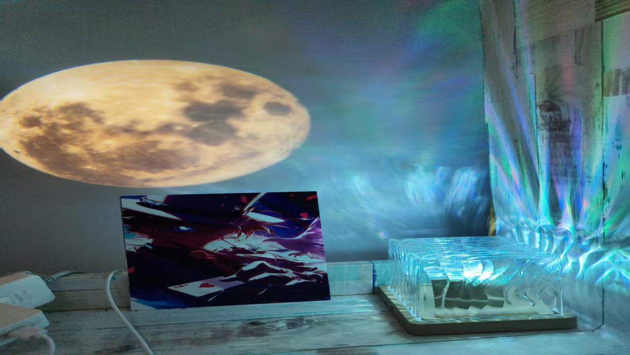 当投影将满月轻缀墙间,水晶灯揉碎流光作星子,22B303这方小窝便织就了“月落次元”的绮梦:暖黄月晕裹着动漫立牌的衣袂,虹色光斑沿桌角漫开,推门时晚风撞碎月光,连呼吸都浸着现实与热爱交织的温柔——方寸宿舍,也能把银河揉作床畔星光。