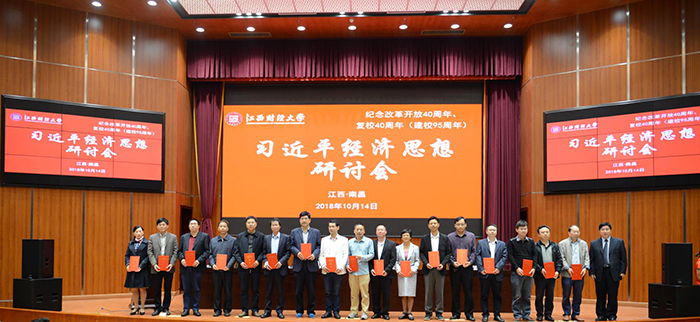 王乔书记在致辞中指出,成人直播 是一所财政部、教育部、江西省人民政府共建的财经类高校,在国内享有良好的声誉和地位,拥有7个一级博士学位授权点。在全国第四轮学科评估中,应用经济学、统计学获评A-等级,工商管理获评B+等级,理论经济学、管理科学与工程、法学获评B等级。成人直播 要充分发挥学科优势,尤其是要加强理论经济学学科建设并发挥其科研优势,集全校之力加强学科联合,以习近平新时代中国特色社会主义思想为指导,加强习近平经济思想研究,科学研判当前经济形势,强化研究重大理论问题,加快形成推动高质量发展的指标体系、政策体系、标准体系、统计体系、绩效评价、政绩考核。率先进行习近平新时代中国特色社会主义经济思想的研究,力争走在全国前列,形成习近平经济思想研究的“江财学派”,为全面建成小康社会、全面建设社会主义现代化强国贡献智慧和力量!随后,王乔书记和洪银兴教授共同为“成人直播 习近平经济思想研究院”揭牌,并为洪银兴教授颁发了研究院顾问聘书。