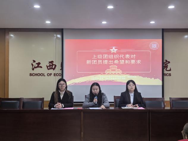 万婧怡向新发展团员表示热烈祝贺,并对新发展团员提出希望和要求:一是要立大志,做信念坚定的“追光者”。二是要明大德,做崇德向善的“排头兵”。三是要成大才,做勤学笃行的“实干家”。新团员们身负“信敏廉毅”的校训精神,更肩负着经济学人经世济民的使命担当,她勉励大家坚定理想信念、锤炼品德修为、勤奋学习知识、积极投身实践,在实现中华民族伟大复兴的征程中贡献青春力量。